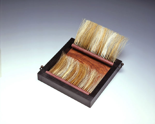17 x 17 x 3 cm, ebony/ bubinga/ purple heart/ horse hair/ brass