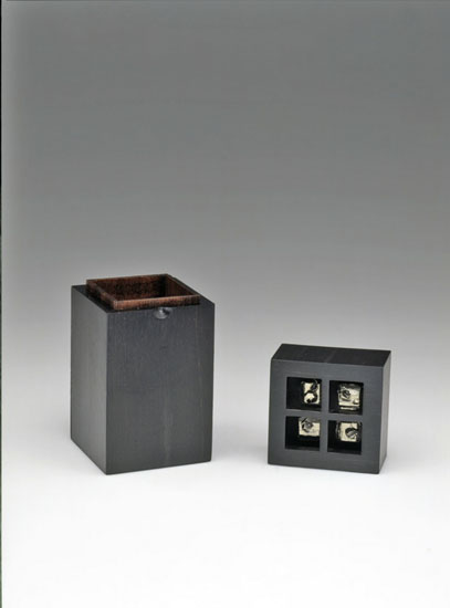 5 x 5 x 9 cm, ebony/ snakewood/ pyrites